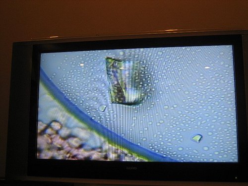 放在高倍的顯微鏡底下 再從螢幕連結出來